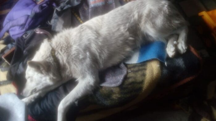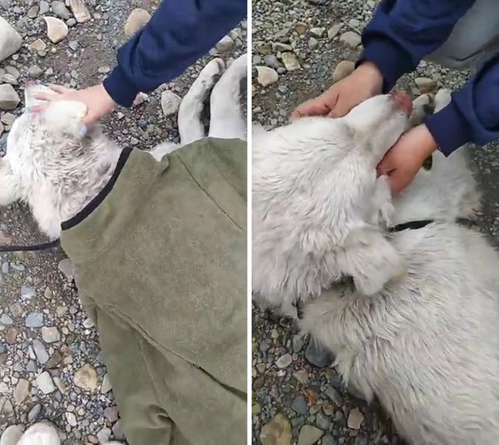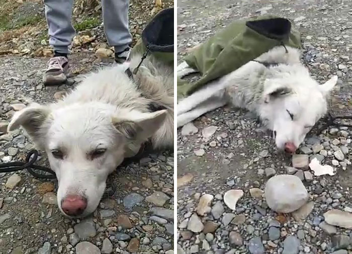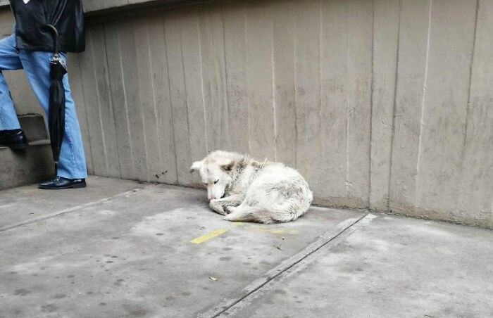 개는 유기견 보호소에 의해 구조되었고 천만다행으로 처치를 받았다.