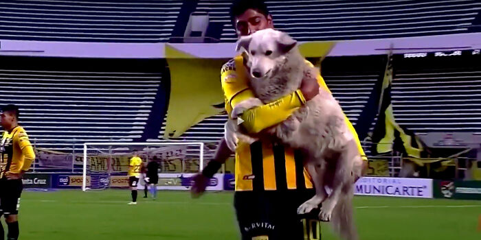 당시 문제의 개는 수천 명의 축구팬들의 마음을 훔치며 화제를 모았다.