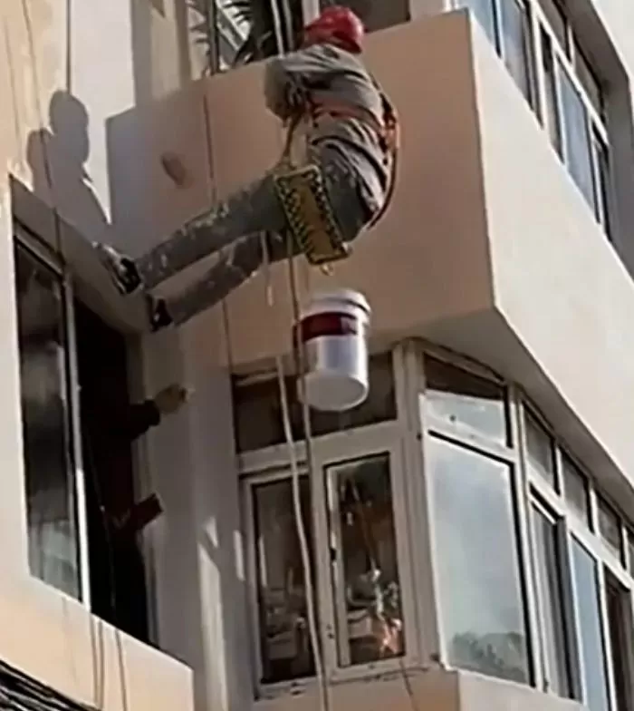 최근 페인트칠을 하던 노동자가 주민에게 안전의 위협을 받는 충격적인 순간이 알려져 화제이다.