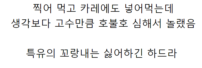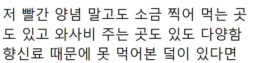 그대로 씹어 먹으면 혀가 잠시 마비될 만큼 아리며, 특유의 향이 매우 강하기 때문에, 익숙하지 않은사람에게는 거부감이 들 수 있다.