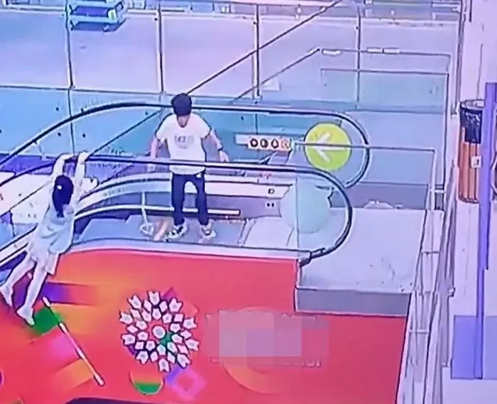 당시 어린소녀는 에스컬레이터 손잡이를 잡고 매달리다 그대로 위층으로 끌려 올라가는 상황이 발생했다.