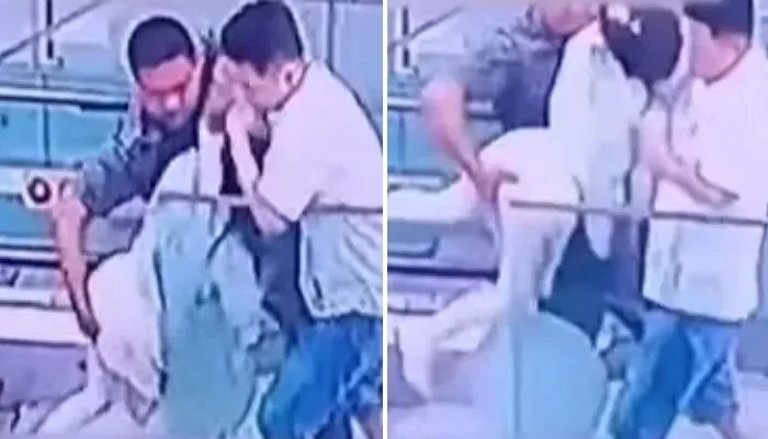 현지 매체에 따르면 남성은 아이가 떨어질까 봐 더 쉽게 끌어올리기 위해 엉덩이를 끌어 올린 것 뿐이라고 해명했다.