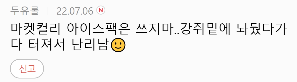 그리고 몸 아래쪽에 놓고 뒹굴거리거나 하다보면 점점 언 상태에서 녹아서 말랑말랑해진 아이스팩이 압력 감당을 못해 터지는(!) 괴랄한 사태가 날 수도 있다.