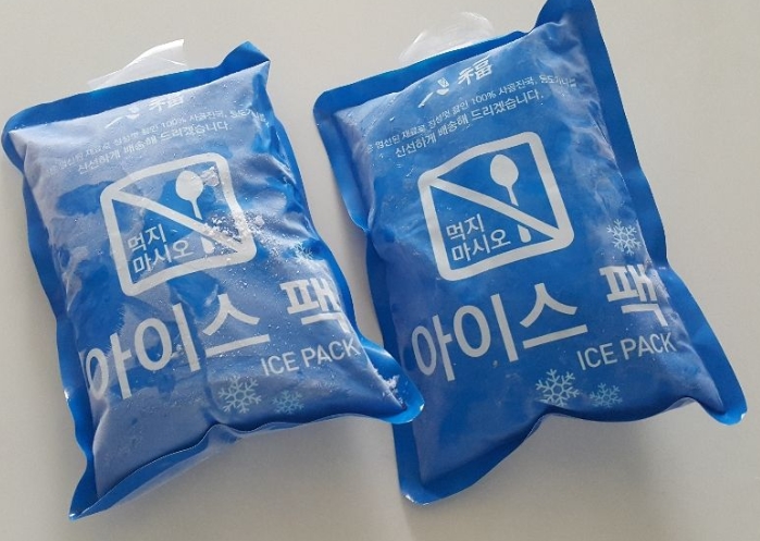 아이스팩은 핫팩의 반대버전이며, 얼려서 주변 온도를 낮추는데 쓴다.
