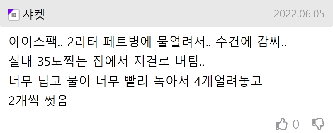물론 아이스팩이 안 닿는 다른 부위는 여전히 습하고 덥다는게 단점이다.