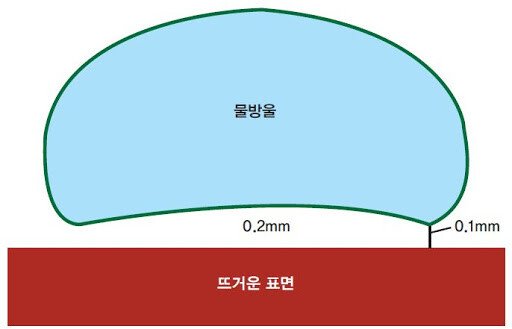 액체의 끓는점보다 높은 온도의 물체가 닿으면 순간적으로 액체가 기화하며 표면에 얇은 절연층을 형성한다.
