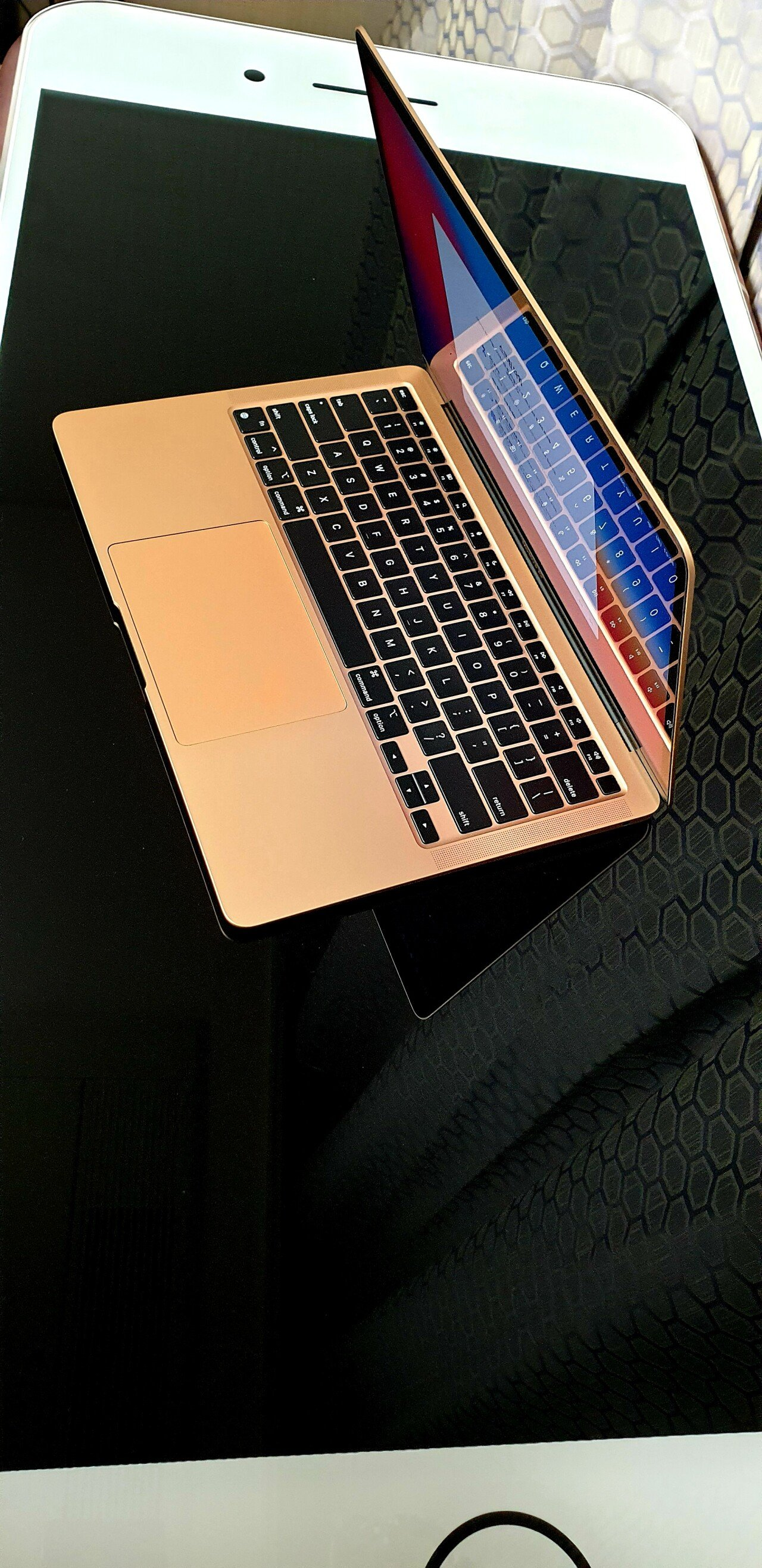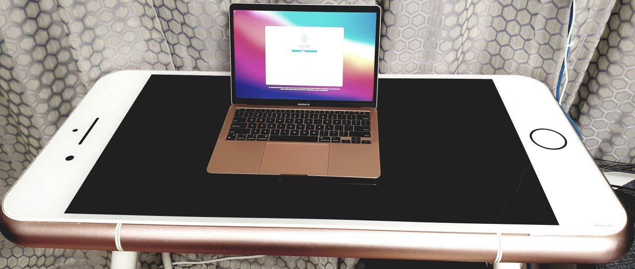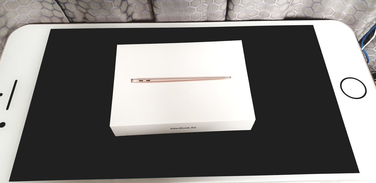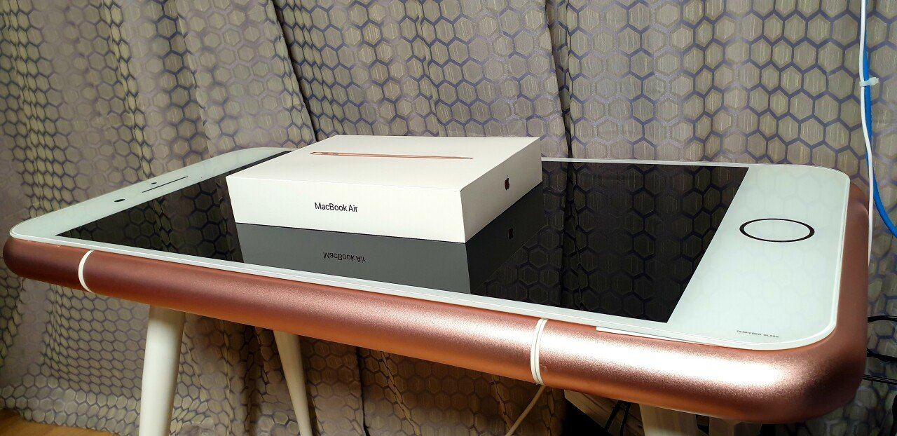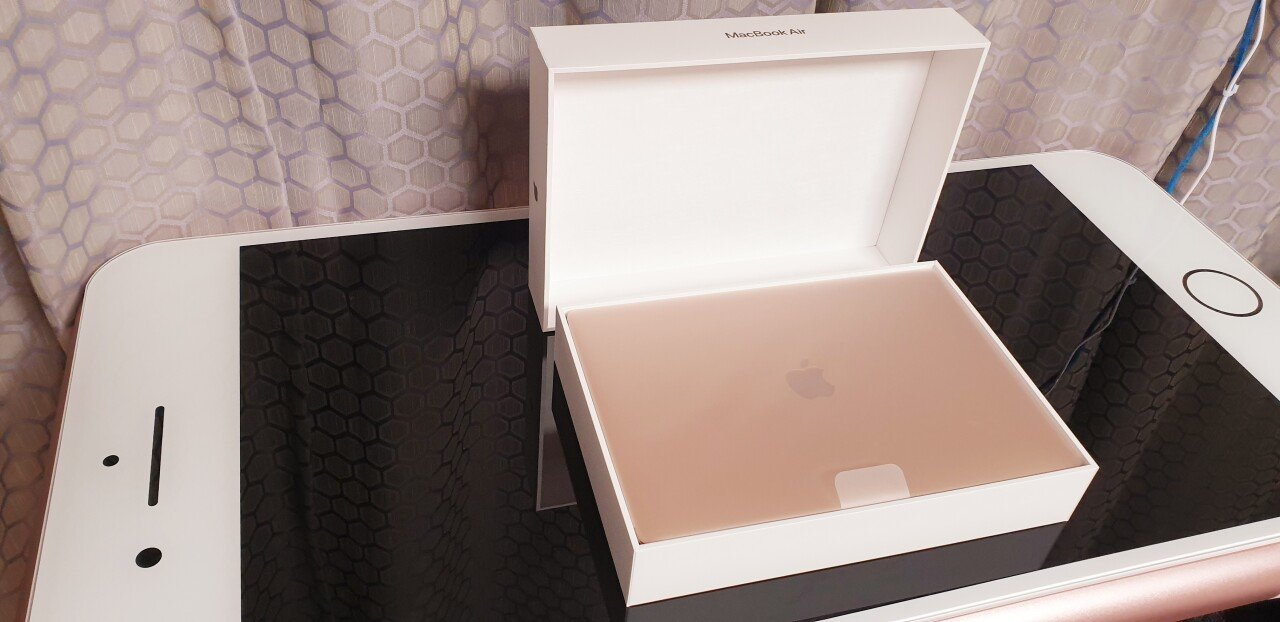 공개된 사진 속에는 아이폰 위에 작은 맥북 상자가 올려져 있는 모습을 확인할 수 있다.