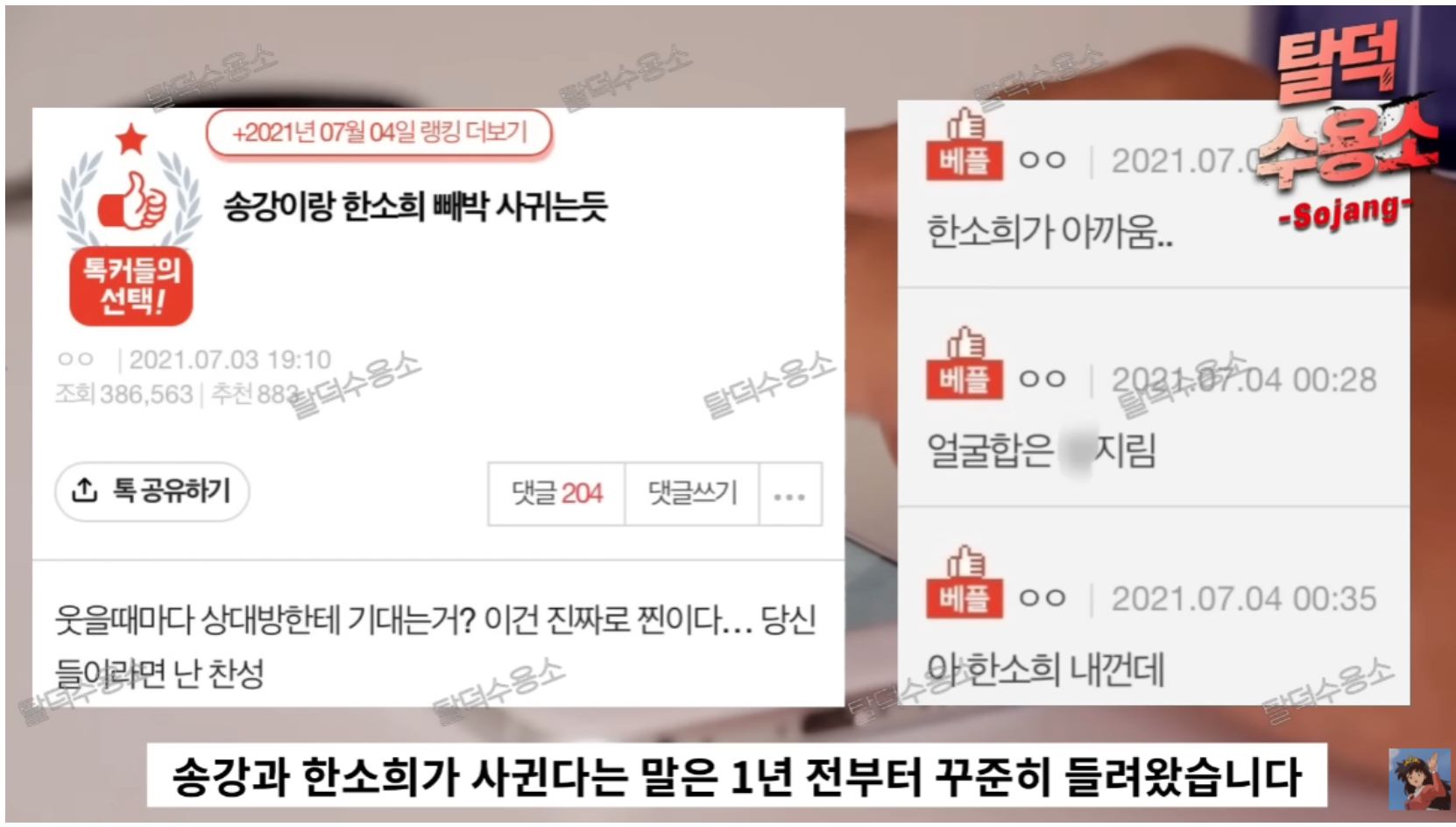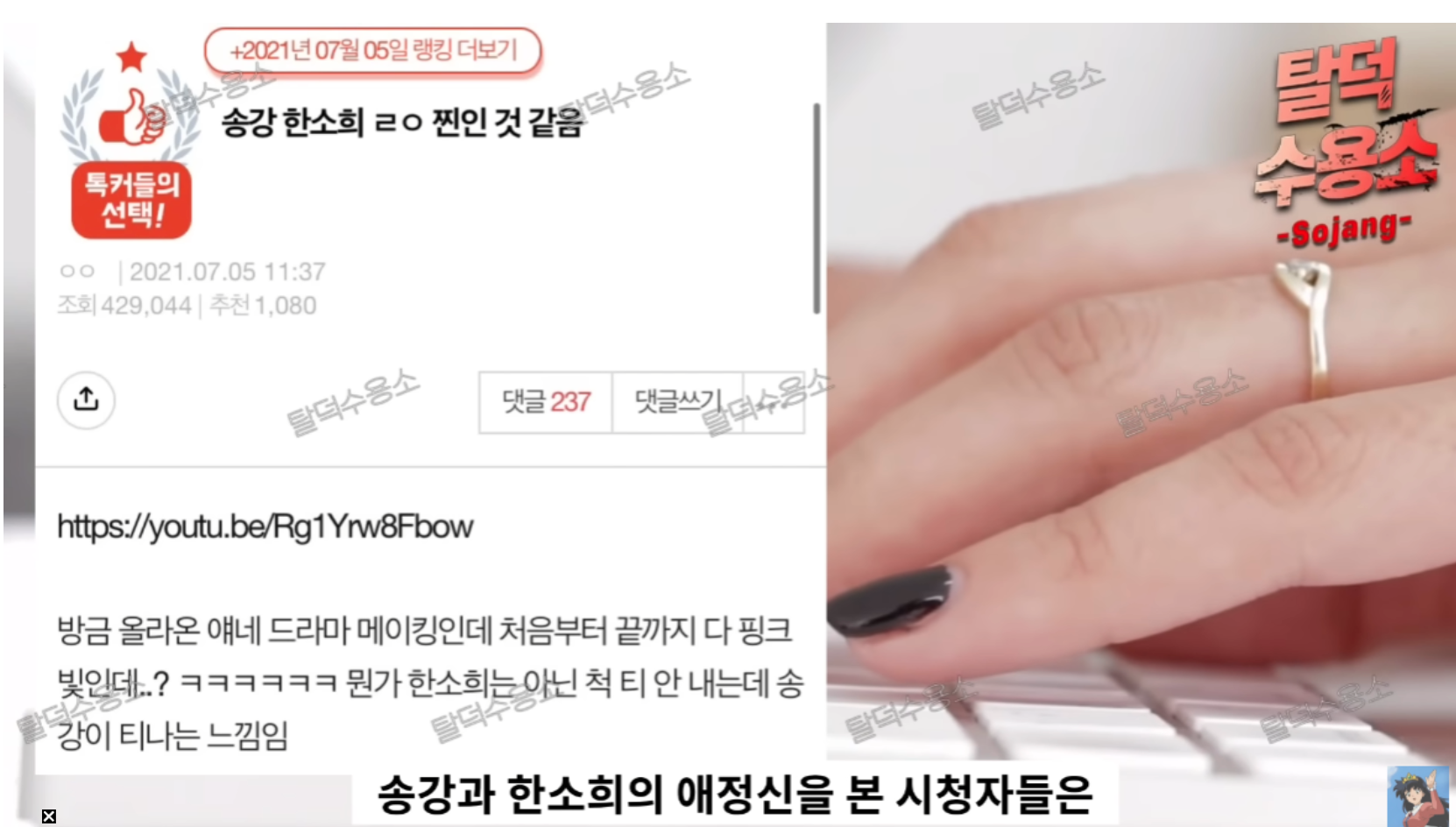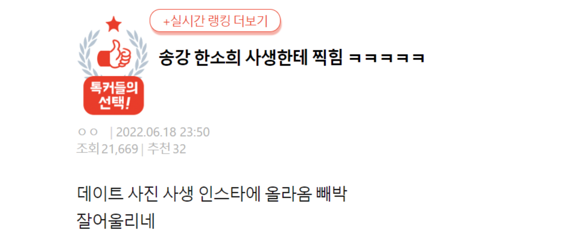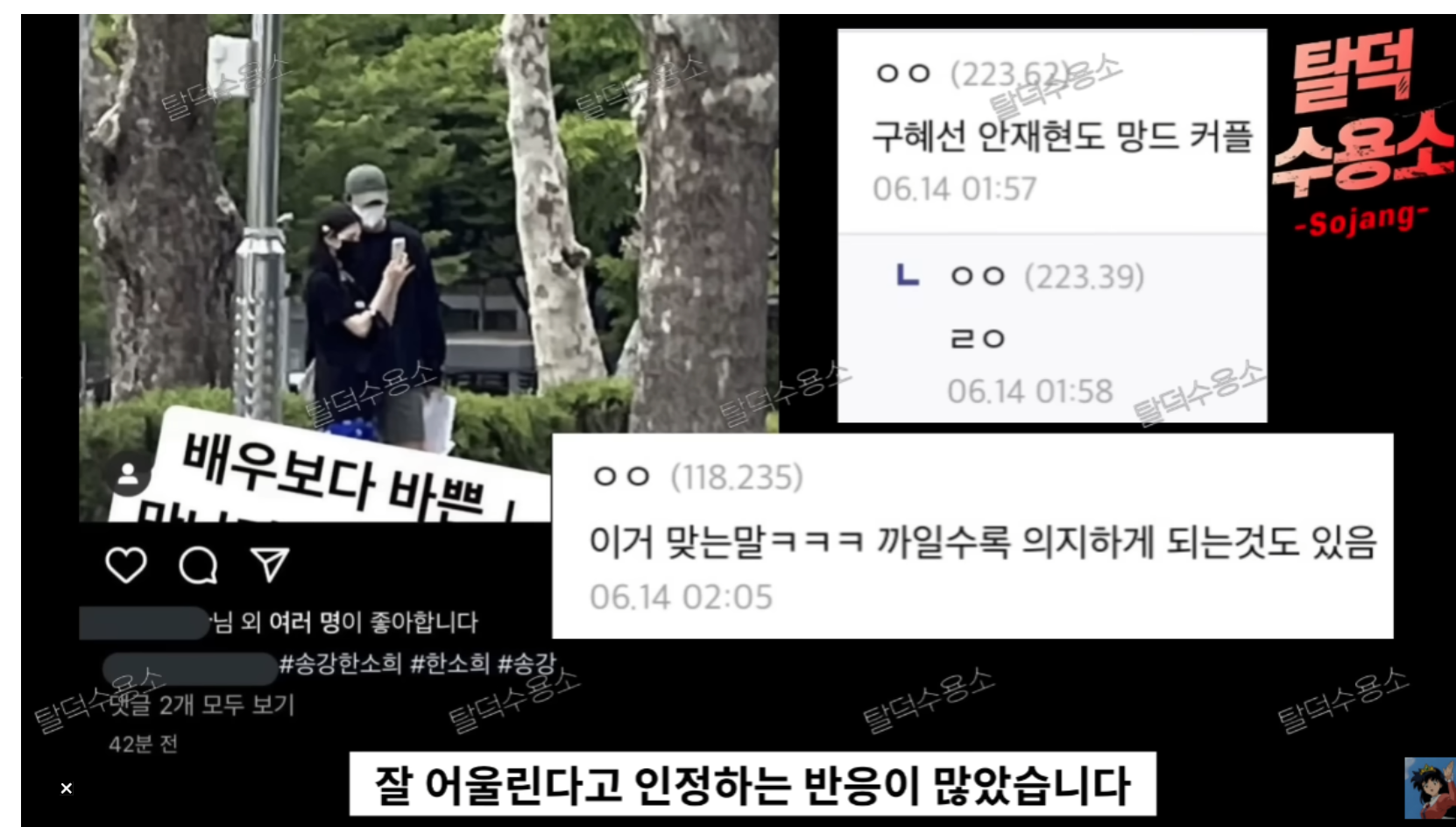 해당 게시물에는 송강과 한소희 목겸담이라는 사진이 올라왔다.