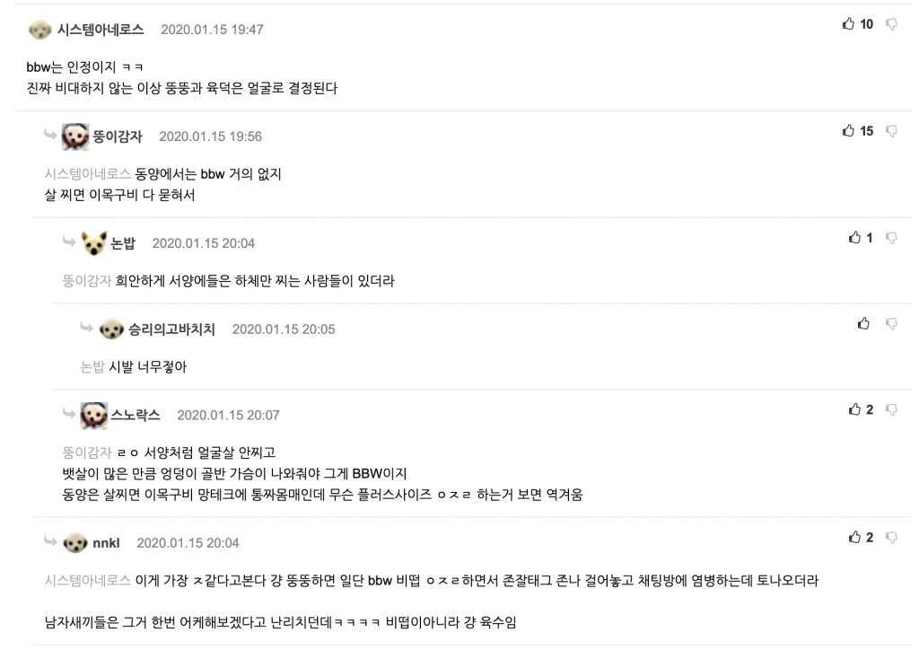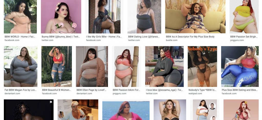 이에 국내 여성들 중 살이 많고 덩치가 큰 여성들도 데이팅 앱이나 SNS에 BBW라는 단어를 달고 자신을 크고 아름다운 여성이라고 어필하는 것이다.