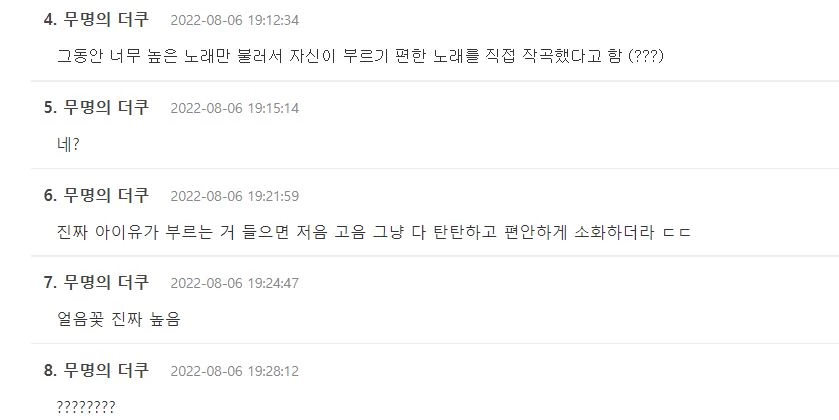 해당 글을 본 네티즌들은 “그동안 높은 노래만 불러서 편한 노래를 만든 게 ‘내 손을 잡아'”, “아이유가 부르는 거 들으면 그냥 저음, 고음 다 탄탄하더라”, “‘얼음꽃’ 진짜 높다”등 다양한 반응을 남겼다.