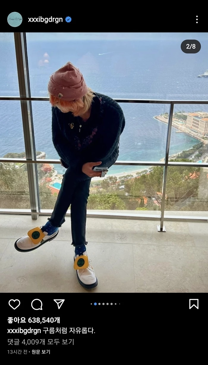 지난 30일 지드래곤이 “구름처럼 자유롭다”라고 했는데, 뷔는 몇 시간 후 “구름 따러 가자”는 말과 함께 사진을 올렸다.