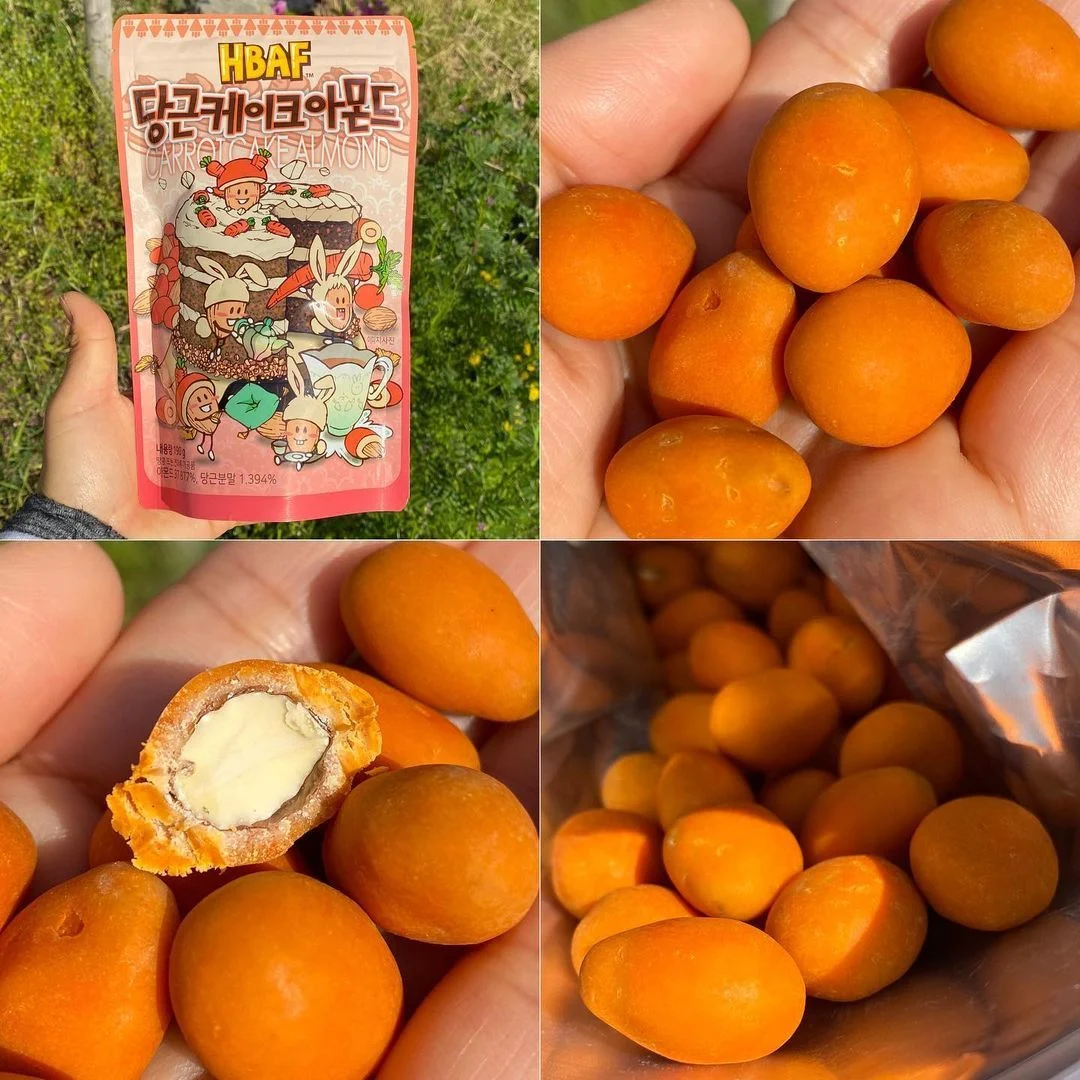 공개된 사진 속에는 당근케이크로 추측되는 주황 코팅에 아몬드가 숨어있는 것을 확인할 수 있다.