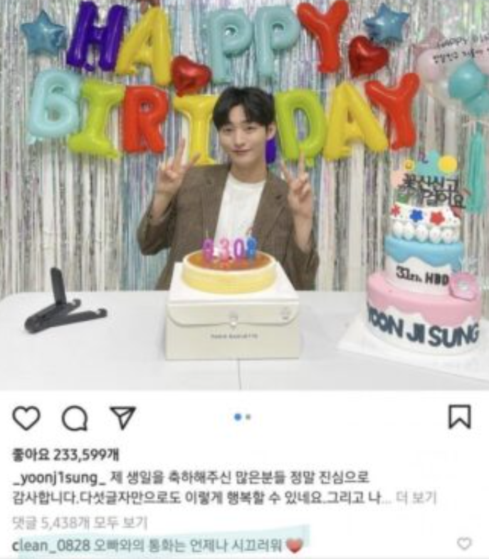 가수 윤지성이 자신의 SNS에, 자신의 생일날 팬들에게 감사하다는 게시물을 공개했었다.