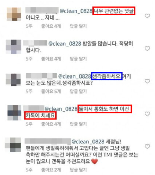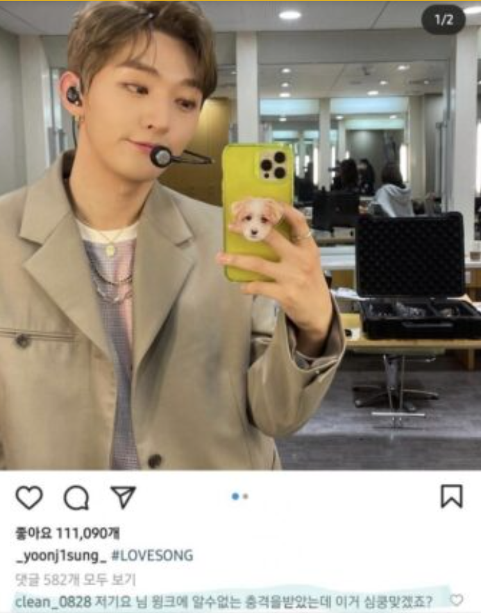 다른 날에도 ”저기요, 님 윙크에 알 수 없는 충격을 받았는데 이거 심쿵 맞겠죠?”라 댓글을 남겨 팬들을 불편하게 했다.