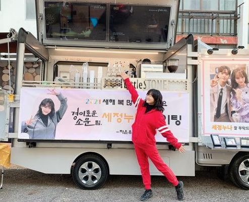 또 김세정은 차은우에게도 커피차를 보내주거나 같이 여러 번 셀카를 찍는 모습을 보였다.