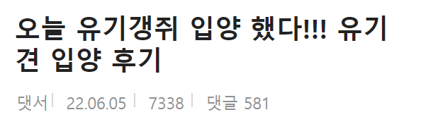 한국에서 키워지는 반려견의 상당수가 유기견이 되며, 정부 통계에 따르면 연간 10만 마리에 가까운 유기견이 발생하고 있다.