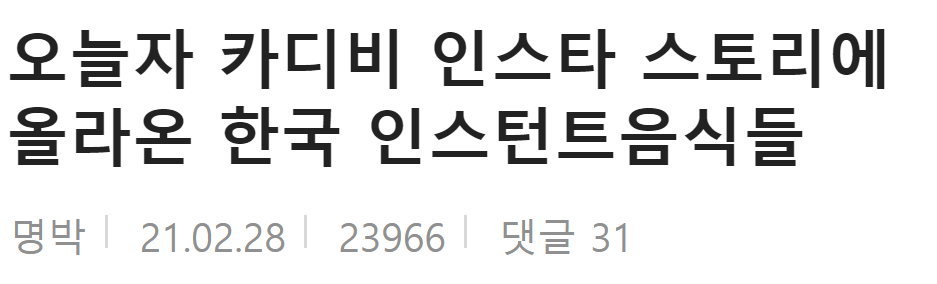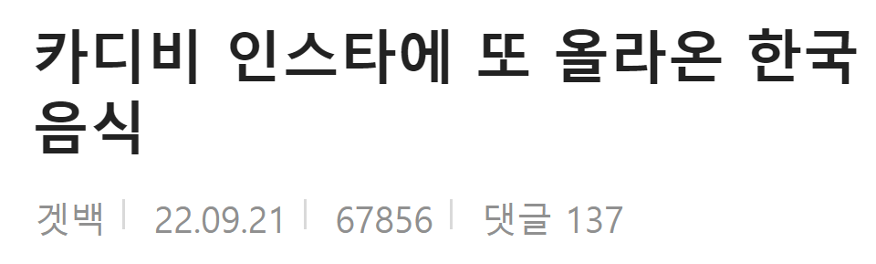 이에 관련해 각종 온라인 커뮤니티에서는 “카디비 인스타에 또 올라온 한국음식”이라는 제목의 글로 누리꾼들 사이에서 엄청난 화제가 되고 있다.