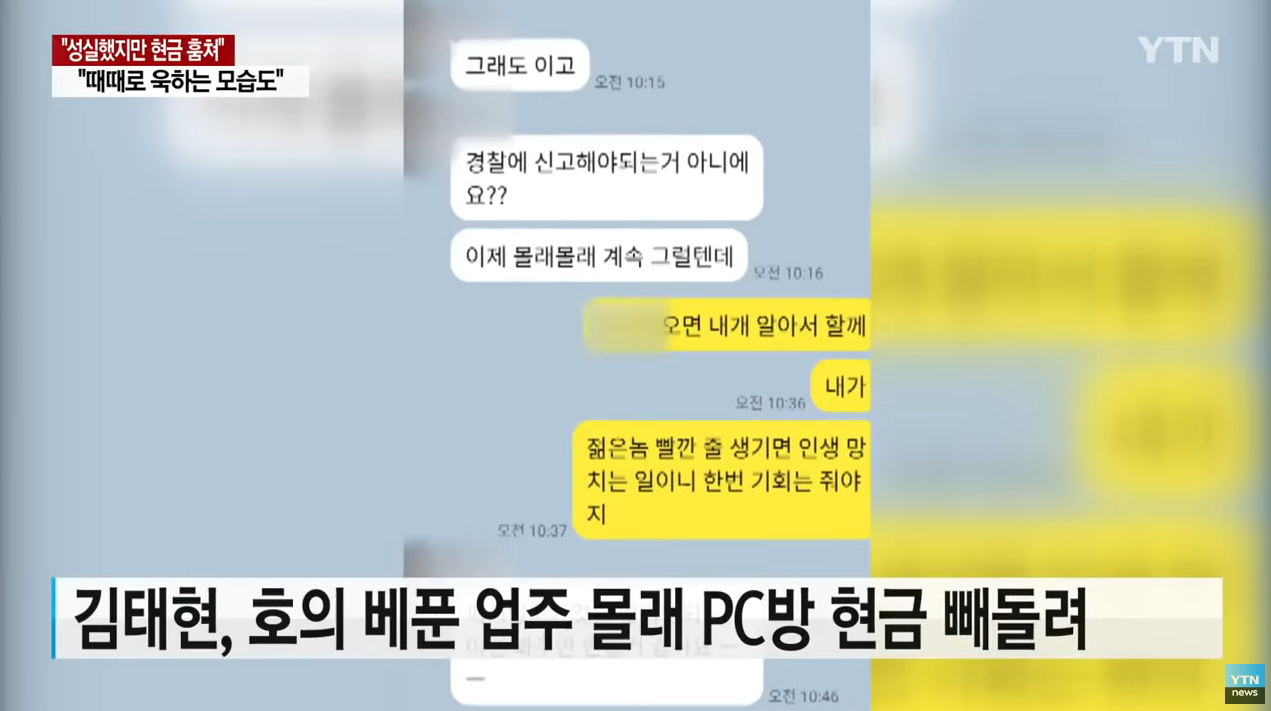 김태현은 평소 자신보다 강한 남성 업주에는 온순한 모습을 보인 것으로 드러났다.