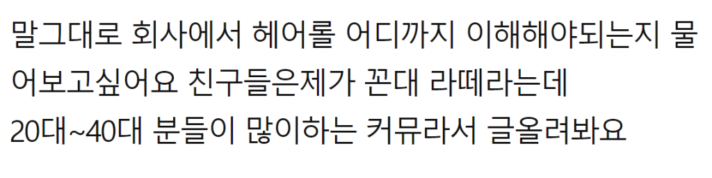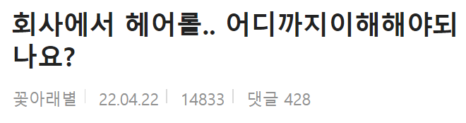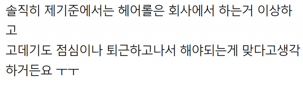 최근 여러 국내 온라인 커뮤니티에 ‘회사에서 헤어롤.. 어디까지 이해해야되나요?’라는 제목의 게시글이 올라와 네티즌들 사이에서 갑론을박이 벌어지고 있다.
