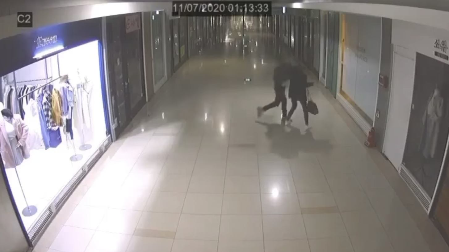 부산 덕천 지하상가 CCTV에 남녀가 격한 몸싸움을 벌이는 장면이 포착됐다.