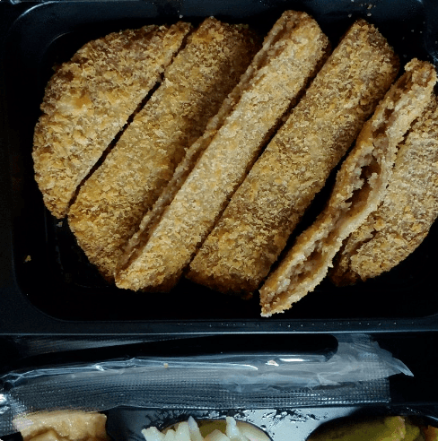 공개된 사진 속에는 내용물이 한 없이 빈약한 돈까스의 모습을 확인할 수 있다.