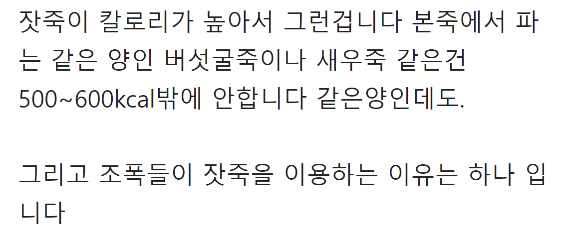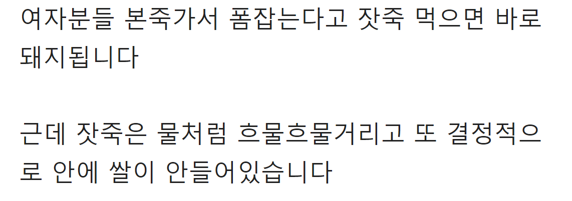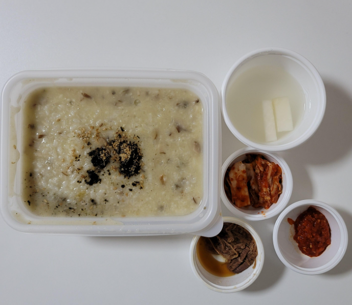 한 그릇의 양은 죽마다 조금씩 다르지만 평균적으로 700g정도이다.