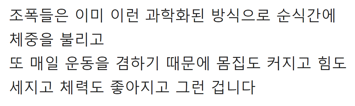 커뮤에서 제대로 난리 난 ‘조폭’ 몸 키우는 식품(+식단, 방법)