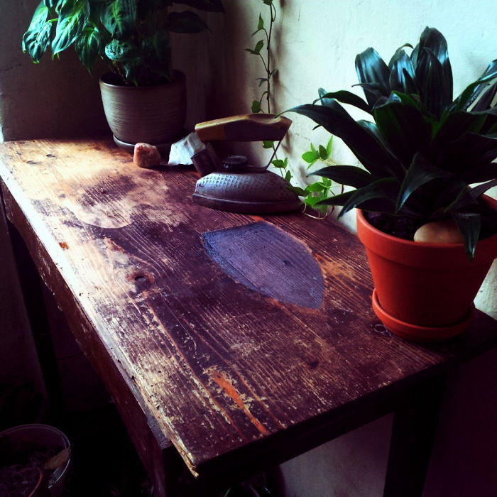 #2 우리 엄마 다리미를 카펫에 떨어트렸는데 철이 완벽히 흔적을 남겼어요. 처음엔 저도 다리미 바닥이 떨어진 줄 알았는데, 그냥 합성 카펫이 녹은 모양입니다