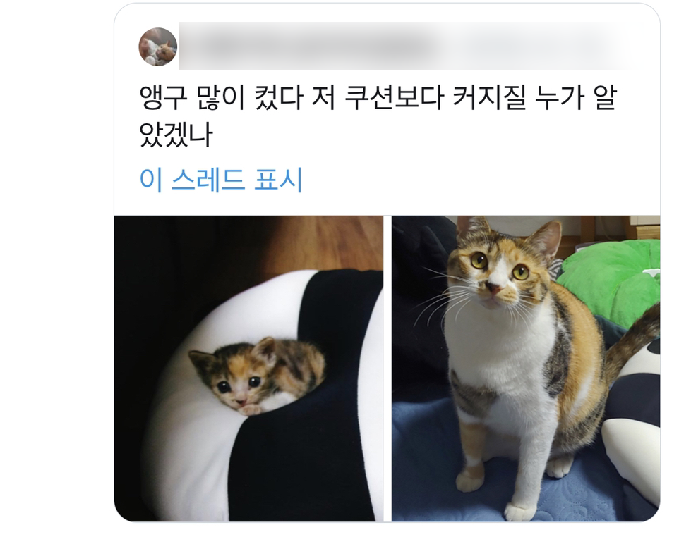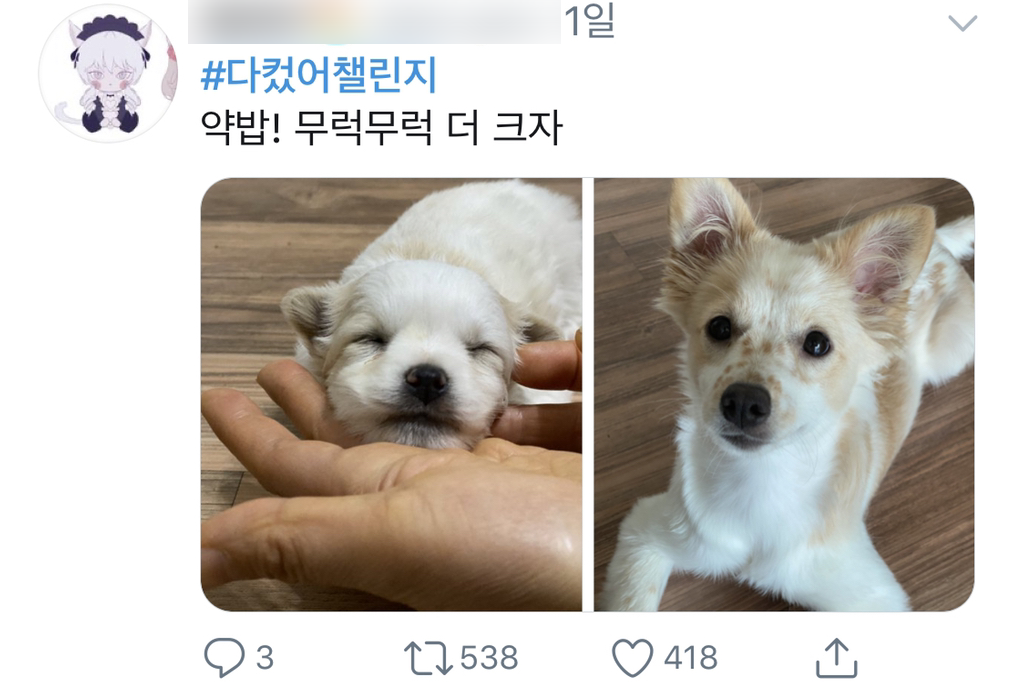 최근 트위터에서 반려동물의 성장을 비교하는 챌린지가 유행을 하고 있다.