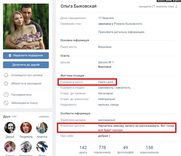 보도에 따르면, 취재진은 우크라이나 정보기관 소식통에게서 입수한 전화번호를 토대로 러시아 대표 SNS 브콘탁테(VK)에서 부부의 계정을 찾아냈다.