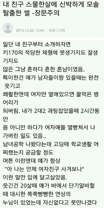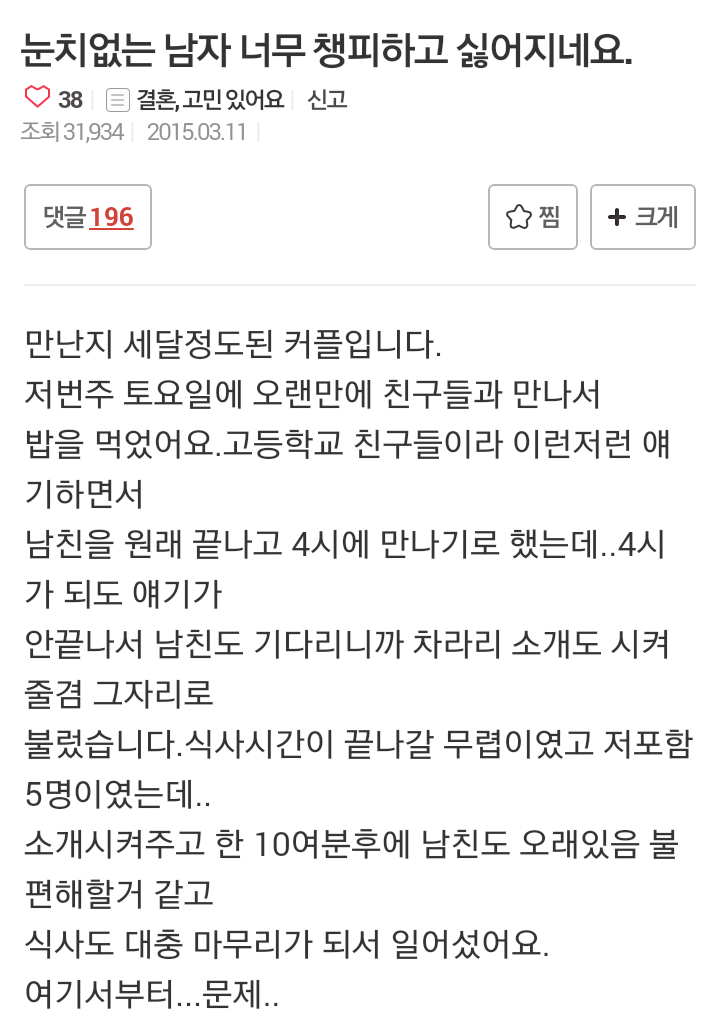 계산 안하고 나간 ‘눈치 없는’ 남자친구 남자친구를 친구들에게 소개 시켜줄 때는 사소한 것도 신경쓰게 된다. ADVERTISEMENT 여자들은 남자친구가 친구들 앞에서 센스있게 행동하길 바란다. ADVERTISEMENT +) 헤어진 여자친구에게 온 청첩장 ADVERTISEMENT ADVERTISEMENT ADVERTISEMENT ADVERTISEMENT +) 연인관계에서 의견이 갈리는 문제 ADVERTISEMENT +) 연인 연기하다 진짜 사귄 썰 ADVERTISEMENT . . ADVERTISEMENT . . ADVERTISEMENT . . ADVERTISEMENT . ADVERTISEMENT . . ADVERTISEMENT . . ADVERTISEMENT +) 친구에서 연인으로.kakaotalk ADVERTISEMENT ADVERTISEMENT ADVERTISEMENT ADVERTISEMENT ADVERTISEMENT ADVERTISEMENT ADVERTISEMENT ADVERTISEMENT ADVERTISEMENT ADVERTISEMENT +) 연하 썸남과 카톡하는 여자 ADVERTISEMENT ADVERTISEMENT ADVERTISEMENT ADVERTISEMENT