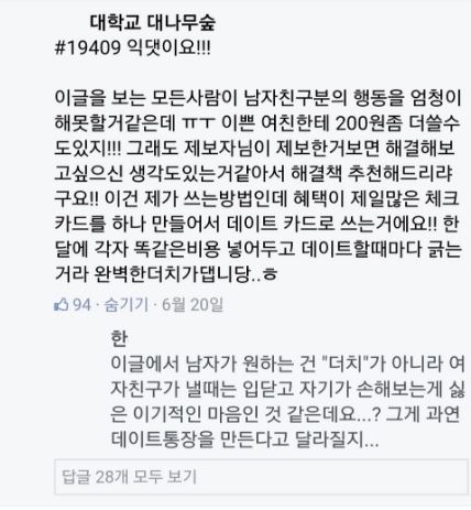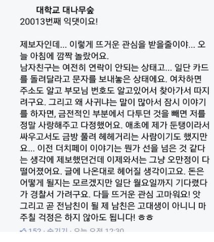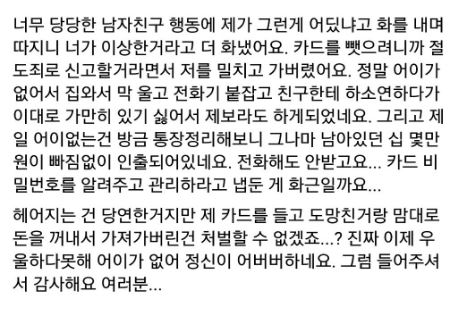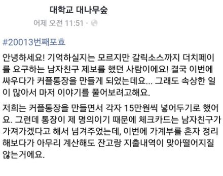 2. 싸우다가 1대1로 데이트통장 만들고 카드 남친 줌