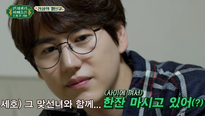 그러자 조세호는 “어릴 적 친구가 오늘 맞선을 봐서 친구랑 맞선녀 사이에서 한잔 마시고 있다”라고 밝혀 규현을 놀라게 했다.