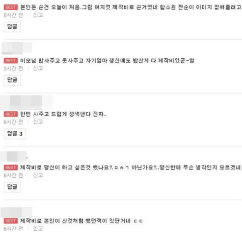 “그러면 그동안의 모습들은 전부 제작진에게 제작비로 결제해 달라고 했던 거였냐”며 “이번엔 안그랬다는 제작진의 목소리에서 뼈가 느껴진다””함소원이 이모님이 본인 엄마 생신 때에도 혹시 밥 사는 척 하고 제작비 쓴 것이냐?”, “짠순이 이미지 없애줄려고 한 것 같은데 오히려 역효과 났네요”, “제작비로 본인 하고 싶은 것 한 거냐?” 는 반응을 보이고 있다.
