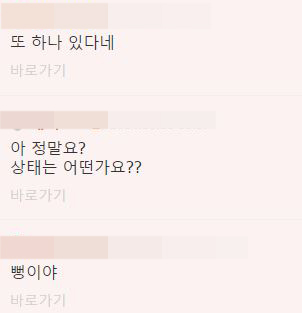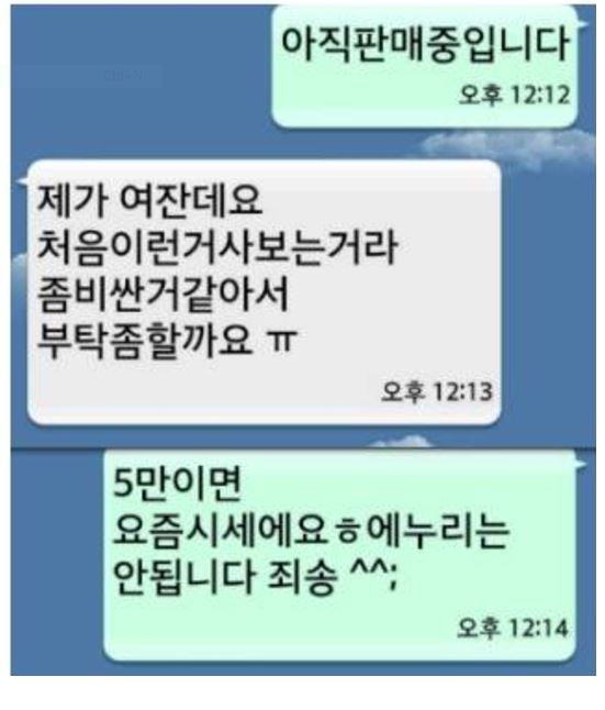 오늘도 평화로운 중고나라.jpg 시리즈 원하는 물품을 싸게 구입하거나 혹은 현재 구할 수 없는 물건을 찾기위해 중고 제품을 판매하는 사이트를 찾기도 한다. ADVERTISEMENT 대표적인 중고 상품 판매처인 ‘중고나라’는 거래가 많이 일어나는 만큼 황당한 사례들도 많이 일어난다. 그 중 네티즌들의 뜨거운 관심을 받은 황당한 거래 문자 2가지를 소개한다. 1.제가 여잔데요 ADVERTISEMENT ADVERTISEMENT 온라인 커뮤니티 ADVERTISEMENT 2.하나 더 있다네 온라인 커뮤니티 ADVERTISEMENT 온라인 커뮤니티