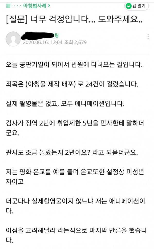 그는 공판기일이 되어서 법원에 다녀오는 길이라며 운을 뗐는데, 죄목은 (아청물 제작 및 유포)라는 명목으로 24건이 걸렸다고 한다.