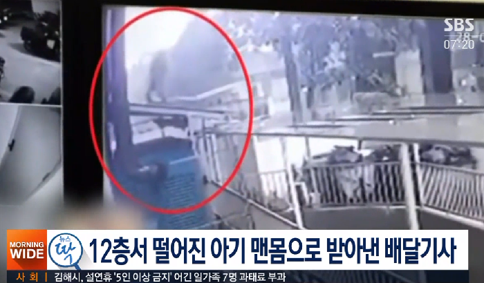 아파트 12층에서 추락하는 두 살 아이를 구한 배달 기사의 사연이 전해졌다.