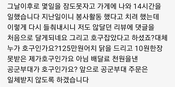 125만원 치킨 먹고 돈 한푼 안낸 군부대 수준(+실제 상황, 사장님 결말)