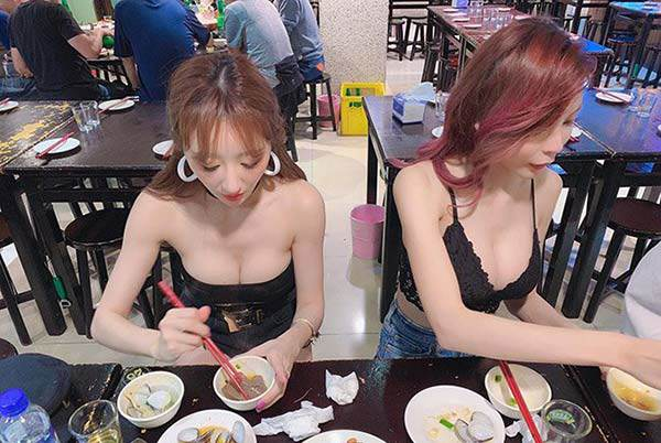 이날 손님들의 시선을 빼앗은 건 싱싱한 해산물이 아닌 완벽한 황금비율을 자랑하는 여성들이었다. 이들은 어깨 라인과 ㄱr.슴이 고스란히 노출되는 섹시한 의상을 입고 식사를 했다.