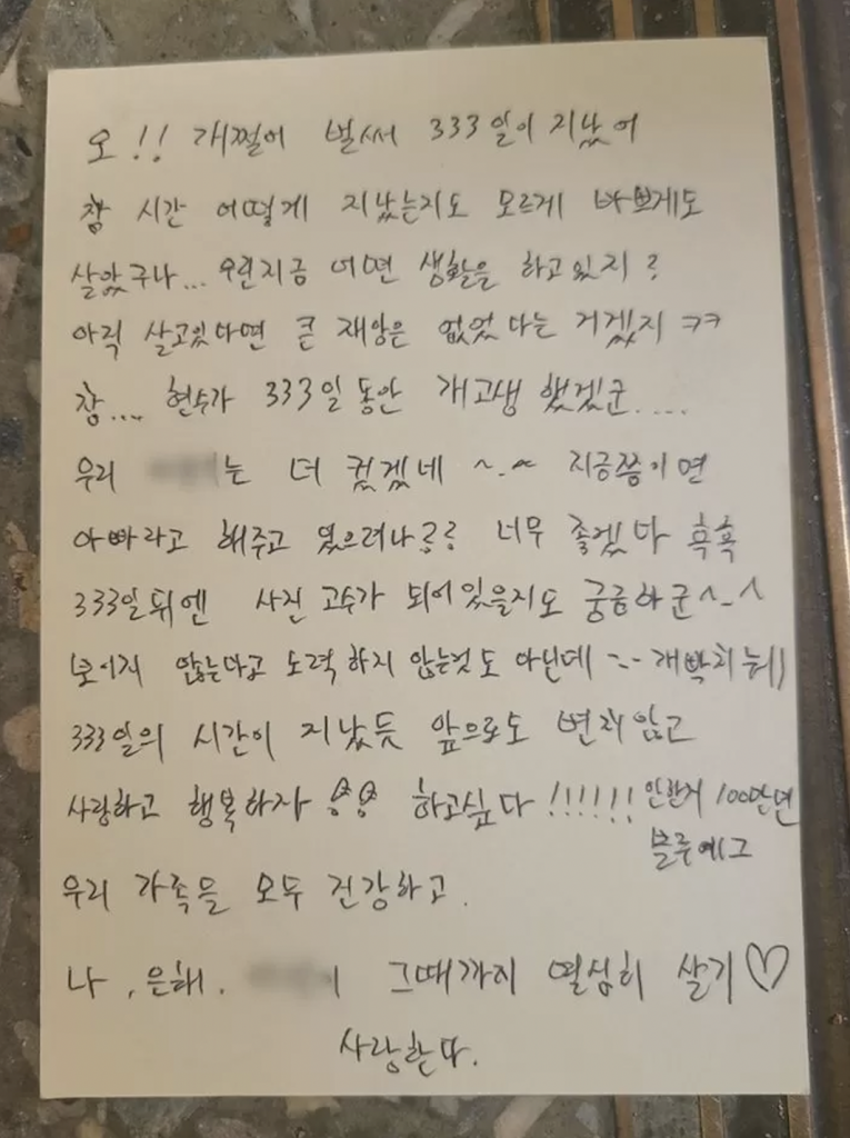 글 말미엔 “333일의 시간이 지났듯 앞으로도 변치않고 사랑하고 행복하자”라고 했다.