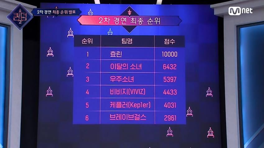 앞서 5위는 4031점을 받은 케플러, 4위는 4433점을 받은 비비지, 3위는 5397을 받은 우주소녀, 2위는 6432점을 받은 이달의 소녀가 차지했다.