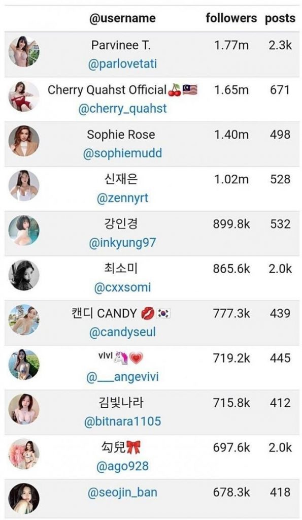 정말 많고 많은 인스타 여신들이 있는데 놀라운 점은 대다수가 한국인이라는 점이다.