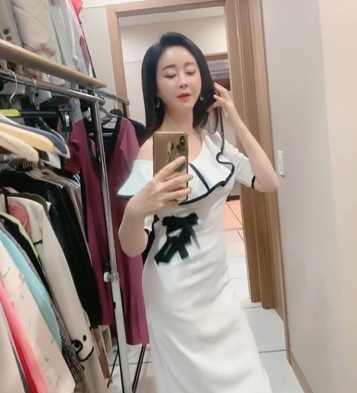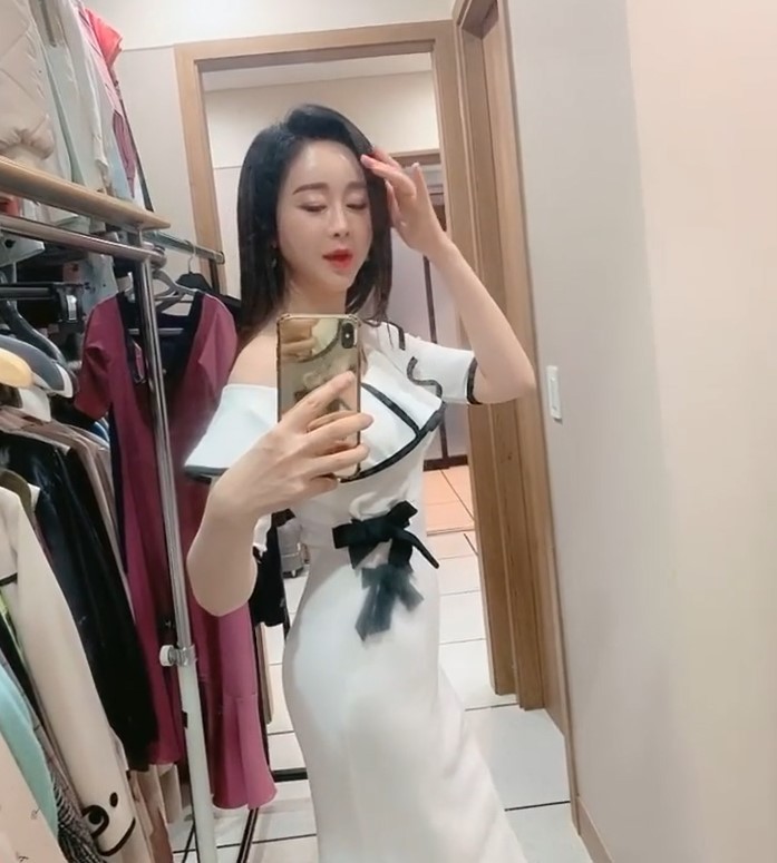 해당 영상 속 함소원은 거울 앞에서 몸매 라인이 드러나는 화이트 컬러 롱 원피스를 입고 서서 자신의 S라인 몸매를 자랑했다.