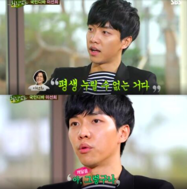 그런데 이선희가 “평생 누릴 수 없는 것”이라고 대답했고, 이승기가 자기가 부(富)를 누릴 수 없음을 받아들였다고 한다.