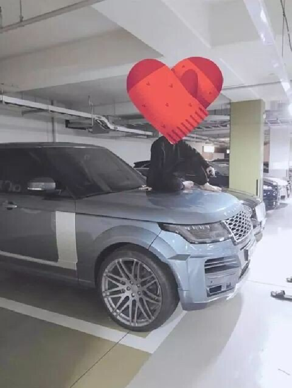 심지어 그는 다른 SUV 차량 위에서도 인증샷을 남겼다. 그는 슬리퍼도 벗어던지고 차량 범퍼 위로 올라탔다.