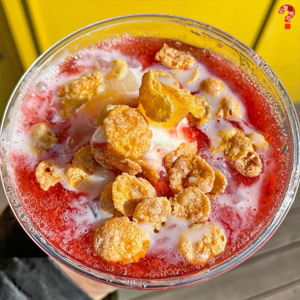 우유, 아이스크림, 시리얼, 딸기 그리고 젤리로 채워져 있다고 한다.