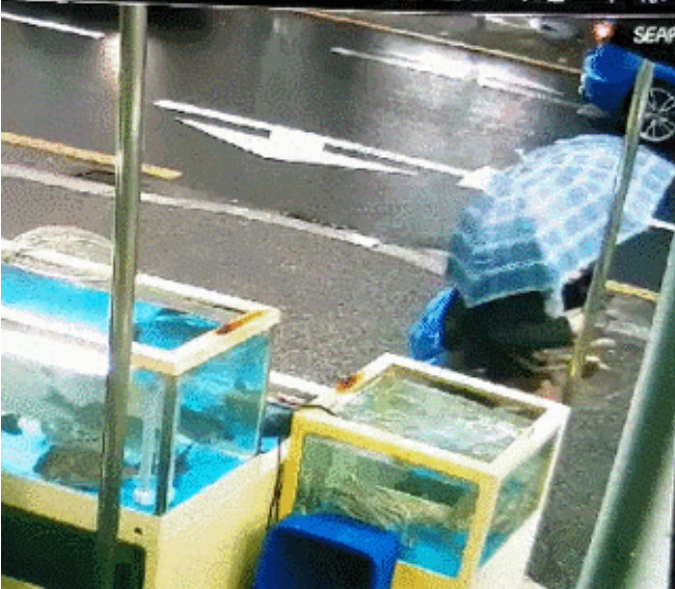 그렇게 눈치를 보던 할머니는 자신을 신경쓰는 사람이 없다는 것을 깨닫곤 수족관에 갑자기 손을 넣더니 대게 한 마리를 꺼내더니 들고 도망갔다.