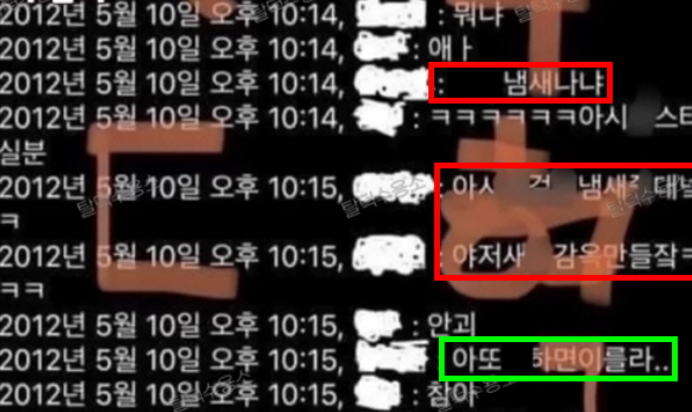 또 그는 ”아, XX 걸X 냄새 X대네. 저 새X 감옥 만들자”, ”아, 또 욕하면 이를라”라 덧붙였다.