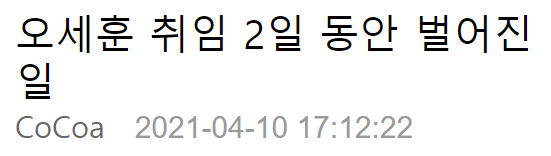 각종 온라인 커뮤니티에는 “오세훈이 서울시장으로 취임한지 2일 동안 벌어진 일”라는 글이 올라와 누리꾼들 사이에서 엄청나게 화제가 되고 있다.