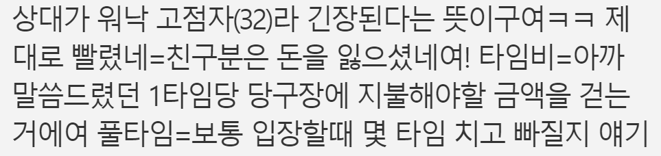 해당 게시물을 접한 한 누리꾼이 해석을 했는데 대화의 뜻은 당구 용어 였다.